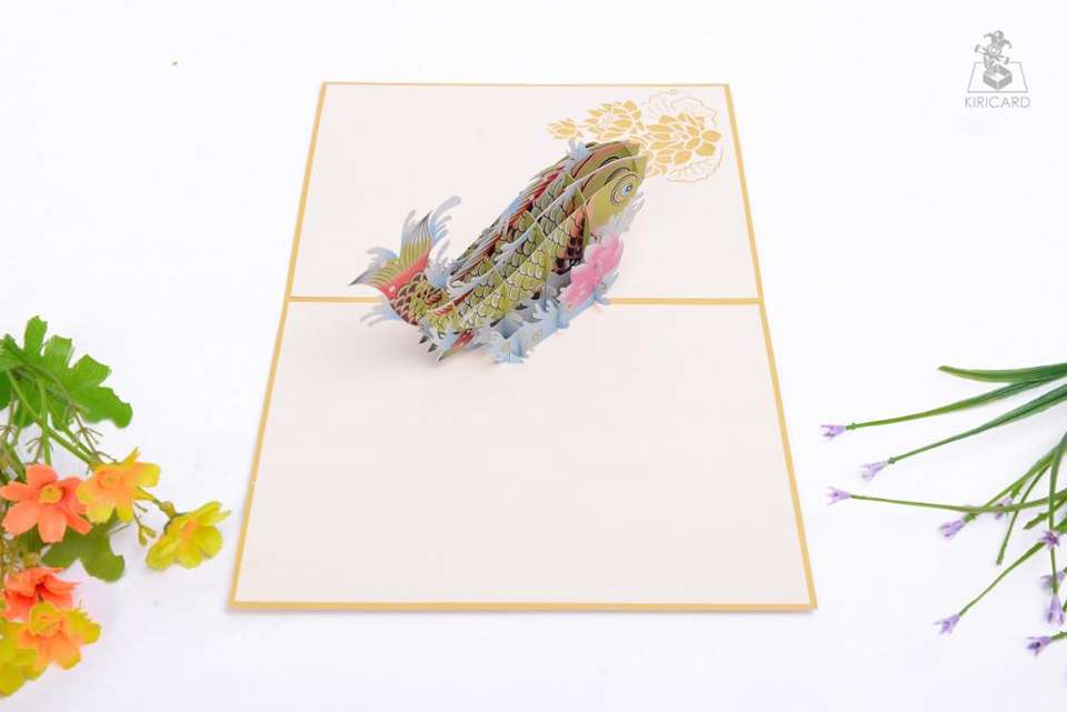 Kiricard การ์ดวันเกิดป๊อปอัพสีดำญี่ปุ่น3D ปลาคราฟต์การ์ดทำจากกระดาษงานฝีมือบัตรอวยพรพิมพ์ออฟเซตลายสัตว์มีสไตล์