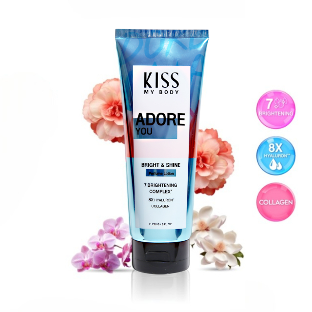 คิส มาย บอดี้ ไบรท์ แอนด์ ไชน์ ไวท์เทนนิ่ง เพอร์ฟูม โลชั่น อะโดร์ ยู 226 กรัม - กลิ่นหอมปลุกความรักแรกพบ