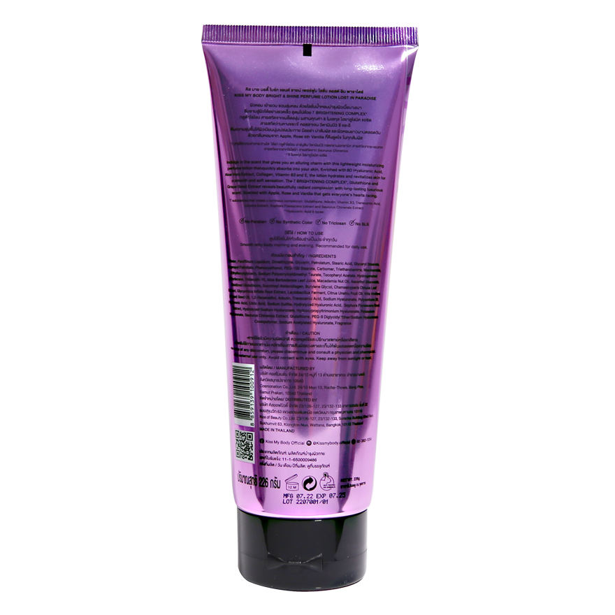 โลชั่นน้ำหอม Kiss My Body Bright Shine กลิ่น Lost Paradise 226 กรัม ผลิตภัณฑ์รักษ์โลก ช่วยให้ผิวขาวกระจ่างใส ชุ่มชื้น กลิ่นหอมเย้ายวนใจ