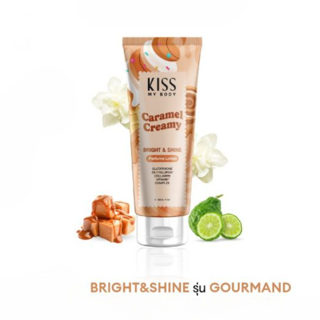 Kiss My Body Bright & Shine Perfume Lotion Caramel Creamy 200g Reveal Your Sexy Elegance Smooth Sweet of Caramel & Whipped Cream