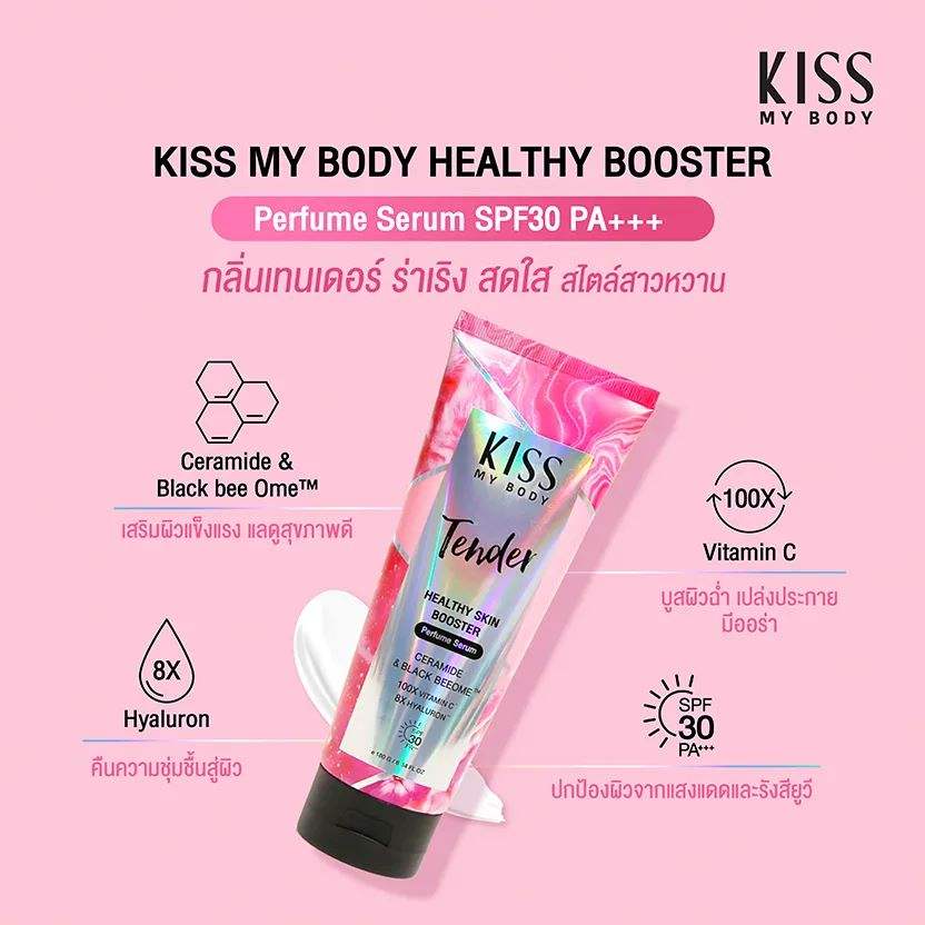 คิส มาย บอดี้ เฮลตี้ สกิน บูสเตอร์ เพอร์ฟูม โลชั่น เอสพีเอฟ 30 พีเอ+++ เทนเดอร์ 180 กรัม ไบรท์เทนนิ่ง ริช ไฮยาลูโรนิค แอซิด สารสกัดจากผลคาคาดูพลัม