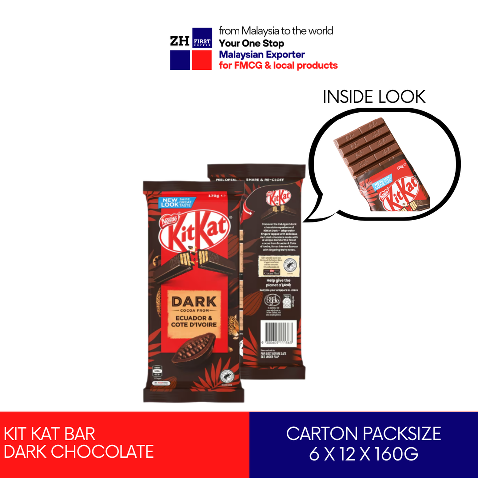 ชุดคิทเคบาร์ดาร์กช็อกโกแลตเคลือบด้วยเวเฟอร์160กรัมมาเลเซียได้รับการอนุญาตตัวแทนจำหน่ายโดยตรงจากโรงงาน