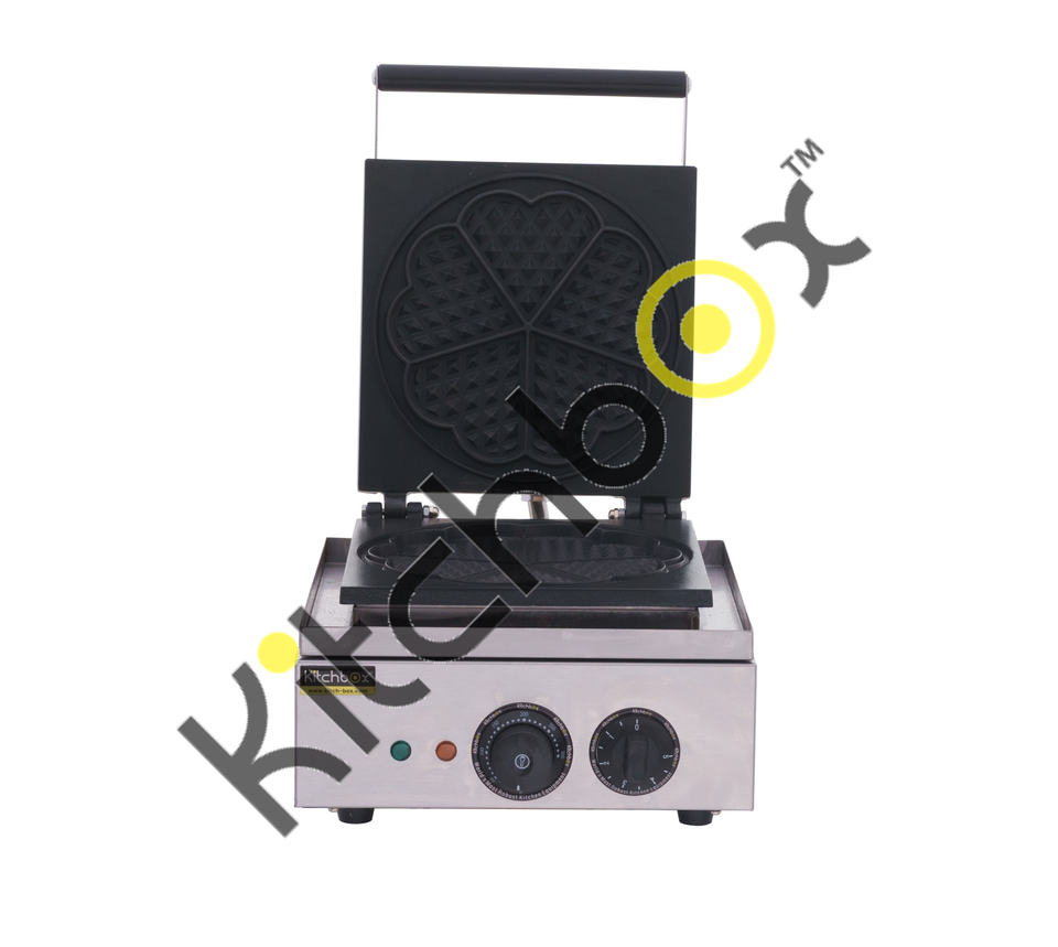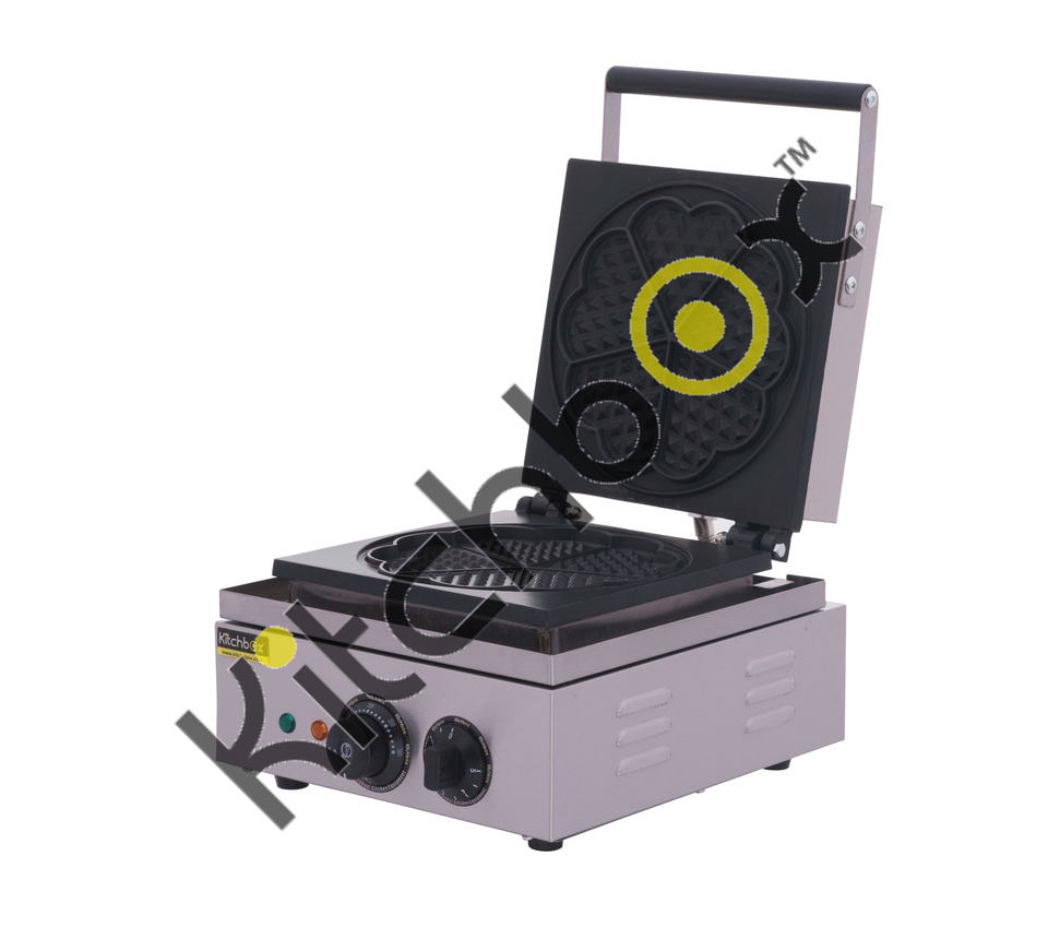 Kitchbox Industrial Commercial Single Flower Waffle Maker (Square Case)-Stainless Steel Non-Stick Coating 1-Waffle Capacity