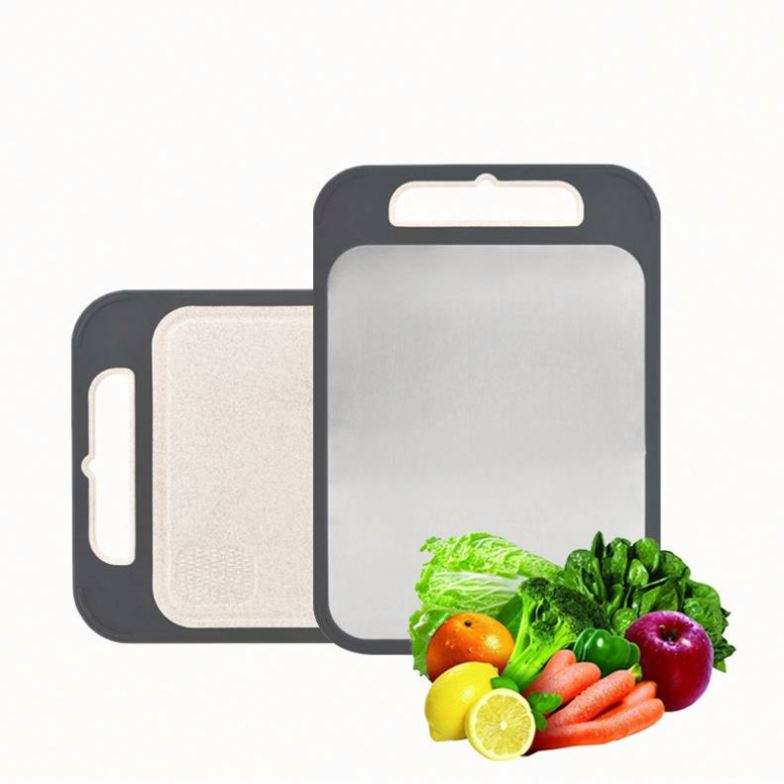 เขียงครัว 2 in 1 สแตนเลสสตีล พร้อมเขียงทำจากฟางข้าวสาลี แบบสองด้าน ทำจากสแตนเลสสตีล 304