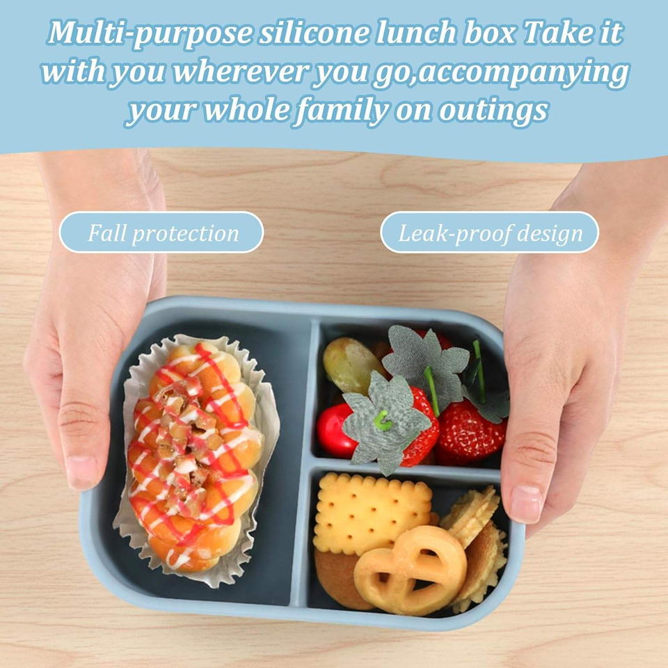 กล่องใส่อาหารเด็ก 3 ช่อง ป้องกันการรั่วซึม เก็บอาหารสด ร้อนได้ ปลอดสาร BPA กล่องข้าวซิลิโคนสำหรับเด็กเล็ก