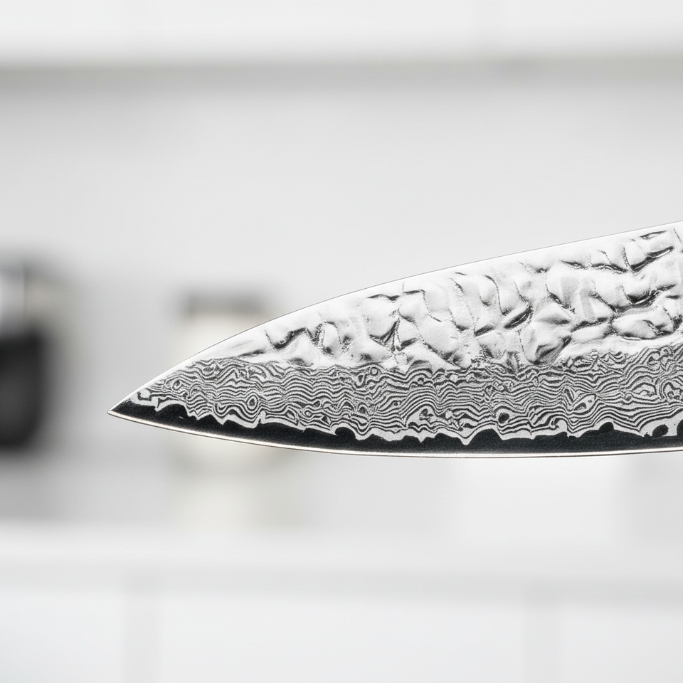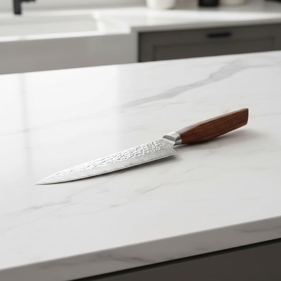 มีดเชฟครัวขนาด 4-5.9 นิ้ว ทำจากเหล็กกล้าคาร์บอน 67 ชั้น พร้อมด้ามไม้โรสวูดแอฟริกัน เป็นมิตรต่อสิ่งแวดล้อม ใช้กับเครื่องล้างจานได้