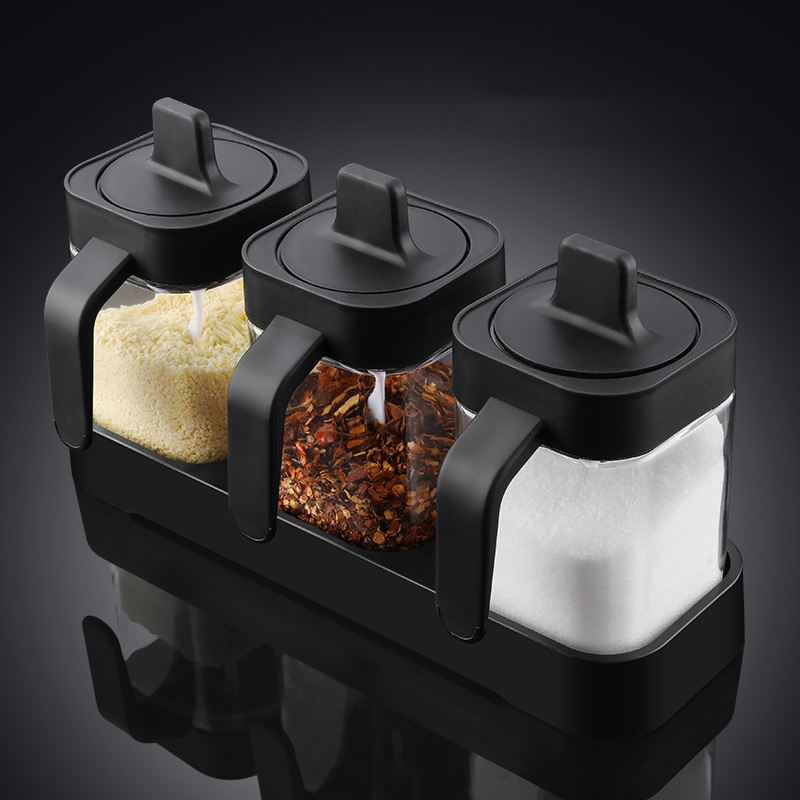 โถแก้วใส่เครื่องปรุงอาหารขนาด400มล. ชุดภาชนะใส่เกลือและน้ำตาล3ชิ้นชุดโหลเครื่องเทศพร้อมช้อนภาชนะใส่เครื่องปรุง