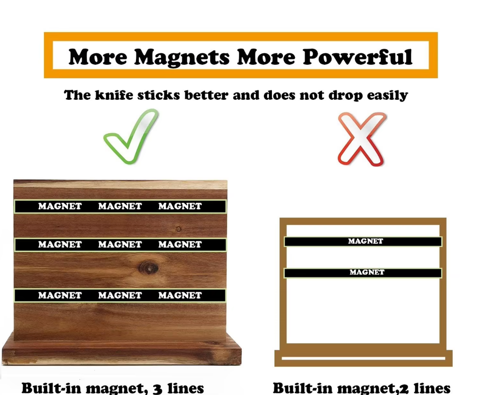 ที่ใส่มีดแม่เหล็กไม้อุปกรณ์ในครัวขาตั้งมีดไม้อะคาเซียบล็อกแม่เหล็กไฟฟ้า