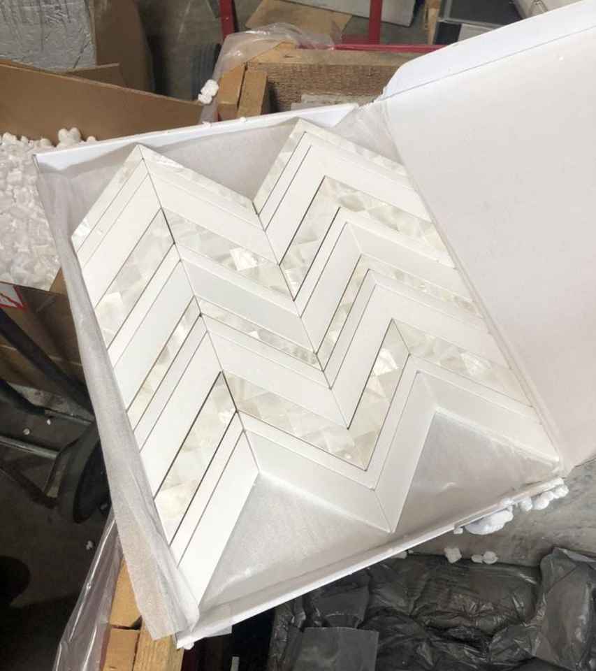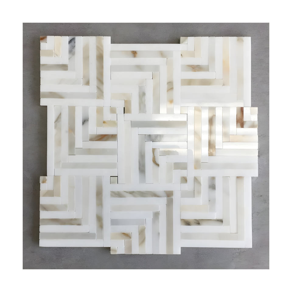 Kitchen Backsplash Wall Mosaic Tile / Decorative Tile Mosaic Stone Century Carrara Marble Mixed Brass Indian Mosaic White Gold