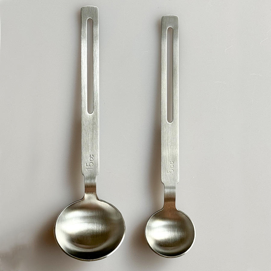 อุปกรณ์ทำขนมในครัว ช้อนตวงกาแฟ ชา สแตนเลส SUS304 5/15 ซีซี ด้ามยาว เป็นมิตรกับสิ่งแวดล้อม
