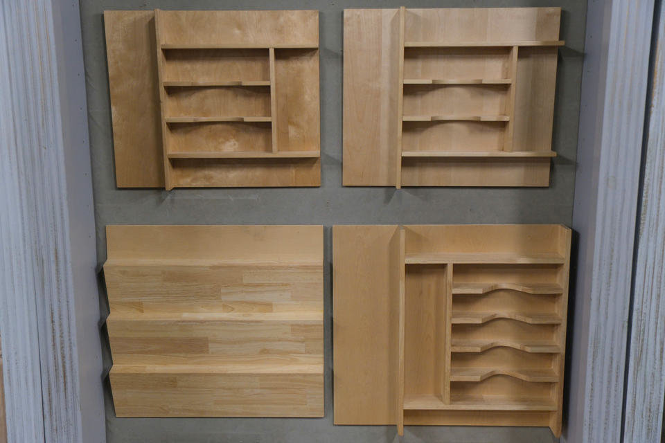 ตัวจัดระเบียบลิ้นชักตู้ครัวพร้อมตัวแบ่งช่องไม้แบบยังไม่เคลือบผิว อุปกรณ์จัดเก็บของทันสมัย