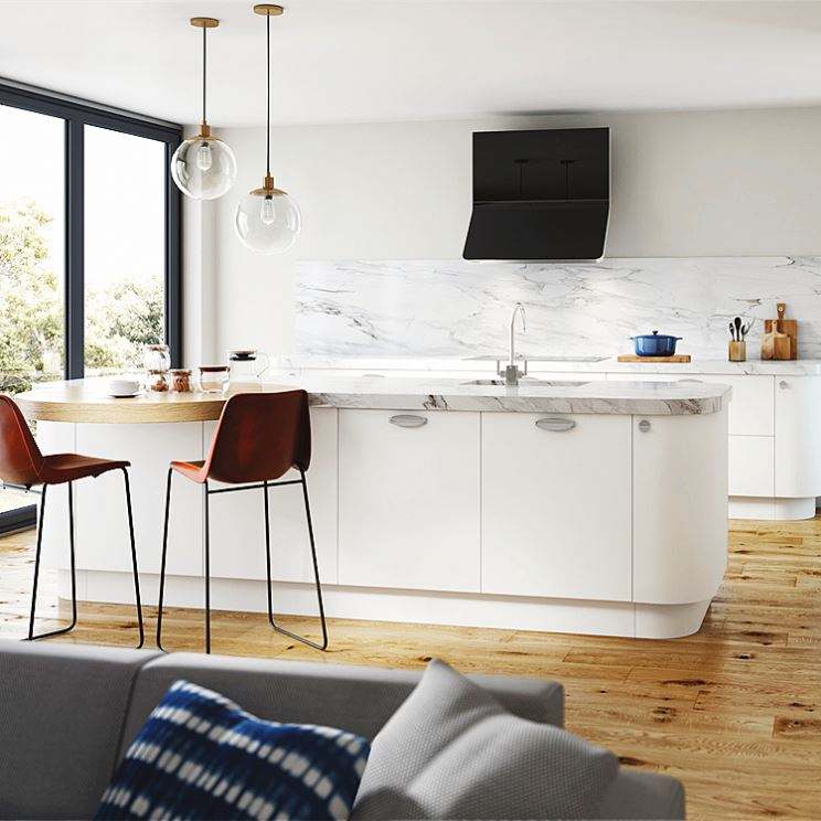 ตู้ครัวดีไซน์ทันสมัยพร้อมไอส์แลนด์ ตู้ครัวแบบโมเดิร์นเคลือบแลคเกอร์