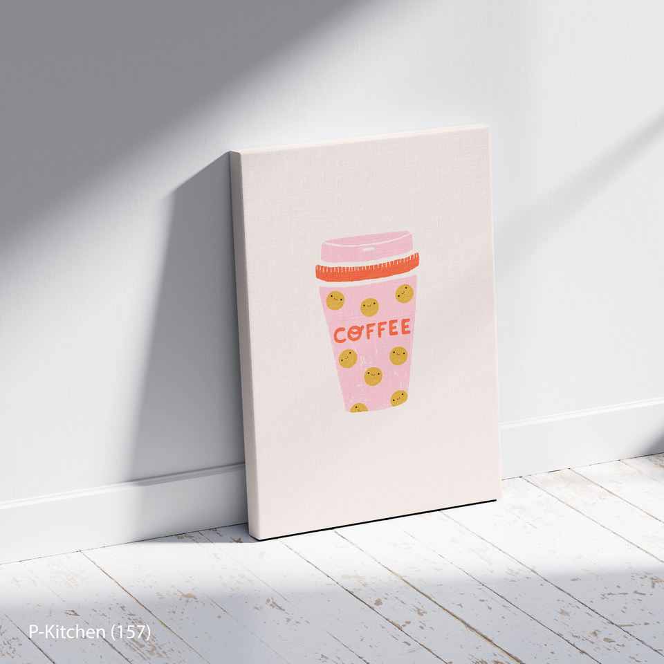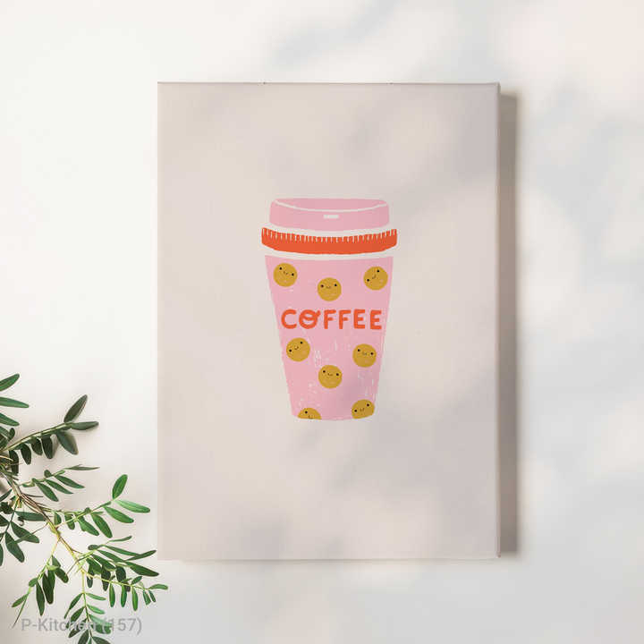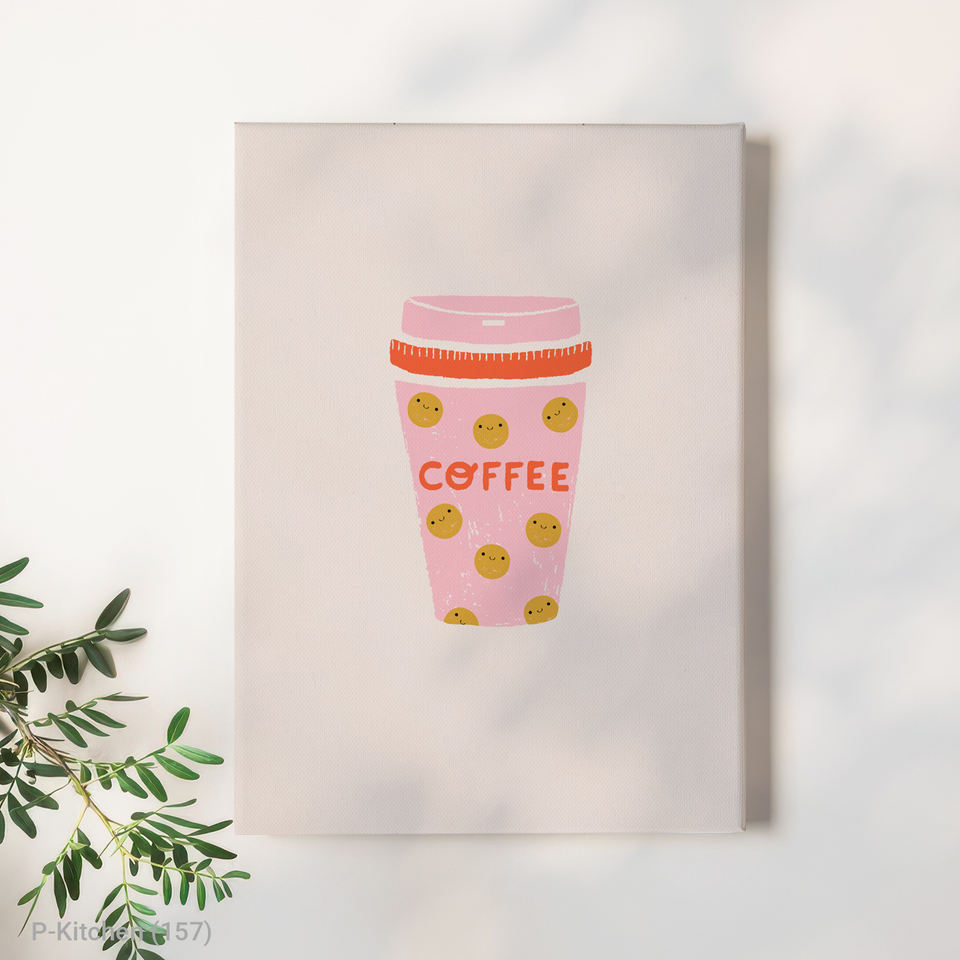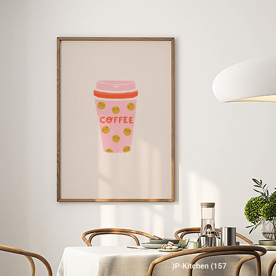 ภาพพิมพ์บนผ้าใบสำหรับห้องครัว, โปสเตอร์ภาพประกอบแก้วกาแฟน่ารัก, ของตกแต่งผนังห้องครัวแบบมินิมอล