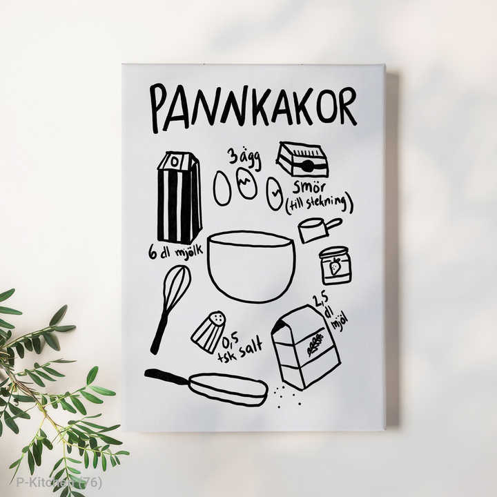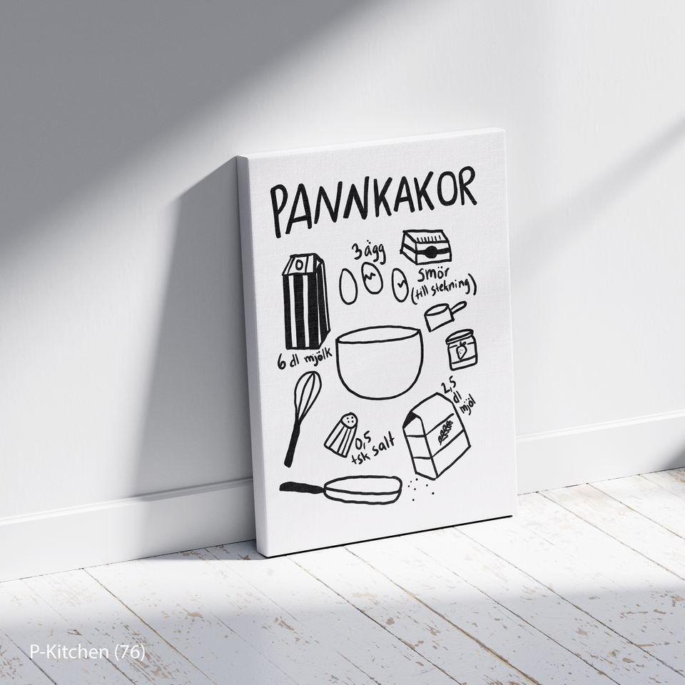 ภาพพิมพ์บนผ้าใบสำหรับห้องครัว, โปสเตอร์ภาพประกอบการทำแพนเค้ก, งานศิลปะตกแต่งผนังห้องครัวสไตล์มินิมอล