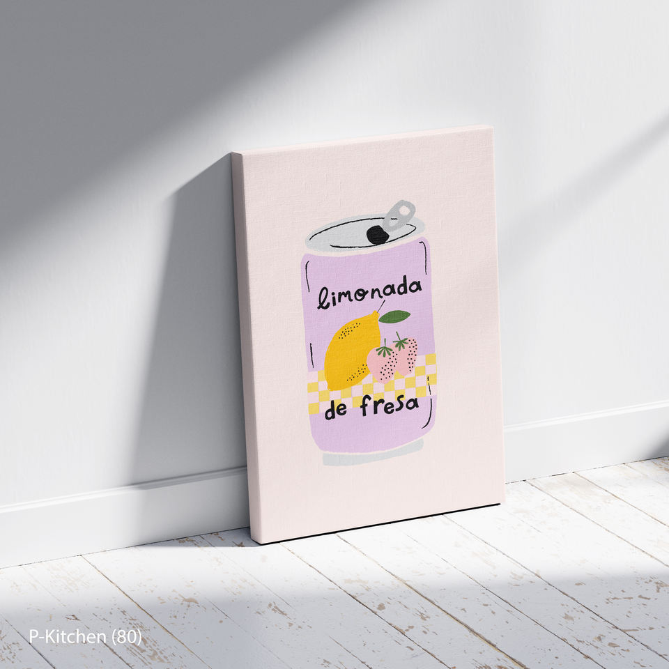 ภาพพิมพ์บนผ้าใบสำหรับห้องครัว, โปสเตอร์ภาพประกอบเครื่องดื่มเลมอนเนดสตรอว์เบอร์รี, ของตกแต่งผนังรูปเครื่องดื่มสมัยใหม่