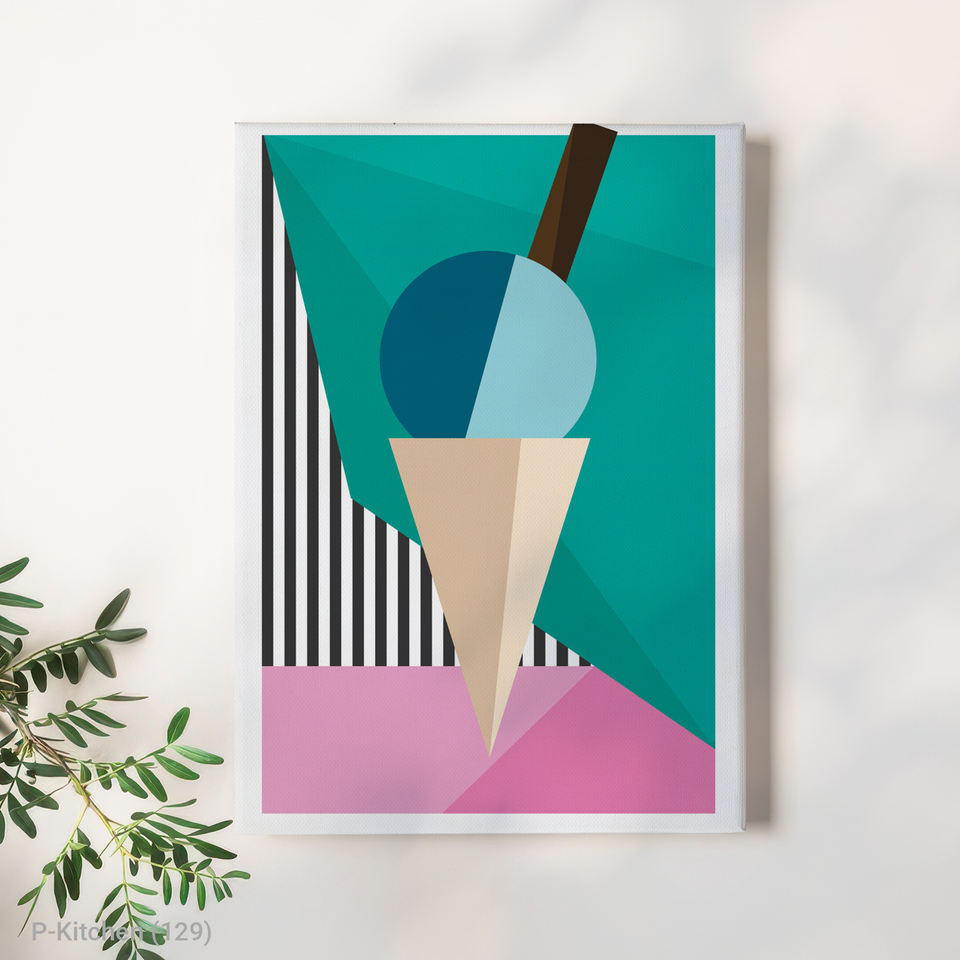 ศิลปะบนผืนผ้าใบสำหรับตกแต่งห้องครัว, โปสเตอร์ภาพประกอบรูปทรงไอศกรีมแบบนามธรรม, ของตกแต่งผนังสไตล์โมเดิร์นสำหรับขนมหวาน