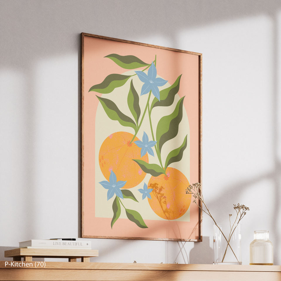 ภาพพิมพ์บนผ้าใบสำหรับตกแต่งผนังห้องครัว ลายมะนาวแบบนามธรรม โปสเตอร์อาหารสีสันสดใส สไตล์เรโทร-โมเดิร์น ของตกแต่งผนังห้องรับประทานอาหาร