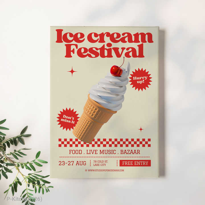 Kitchen Canvas Wall Art, Ice Cream Festival Dessert Illustration Poster, Vintage Cafe Wall Decor for Home