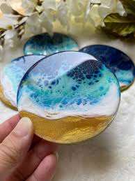 ที่รองแก้วชาเรซิ่นทรงกลม ผิวมันวาว สำหรับงานจัดเลี้ยงในครัว ใช้รองแก้วน้ำ แก้วเบียร์