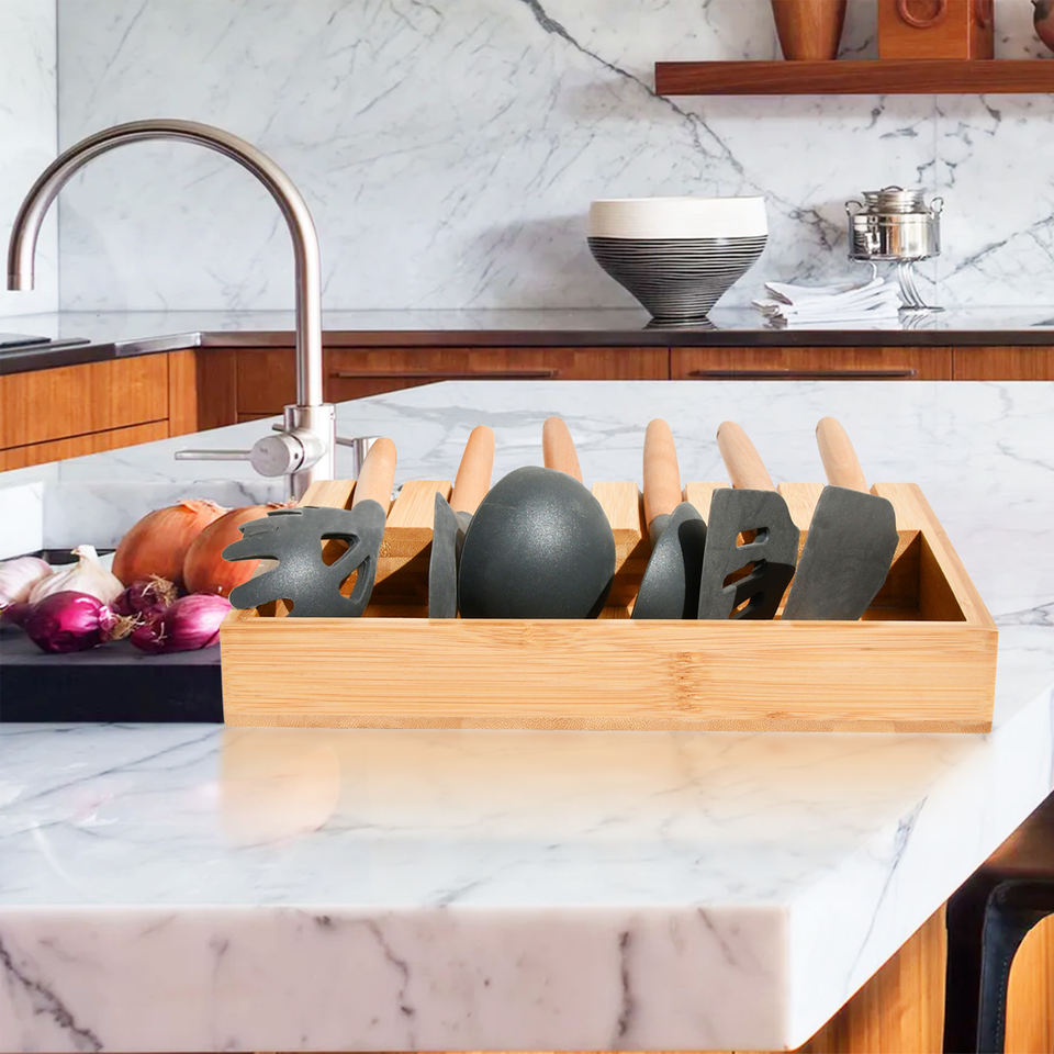 ที่วางช้อนไม้อะคาเซียที่วางช้อนไม้ไผ่ที่วางอุปกรณ์ในห้องครัวพร้อมแผ่นรองน้ำหยดสำหรับหลาย