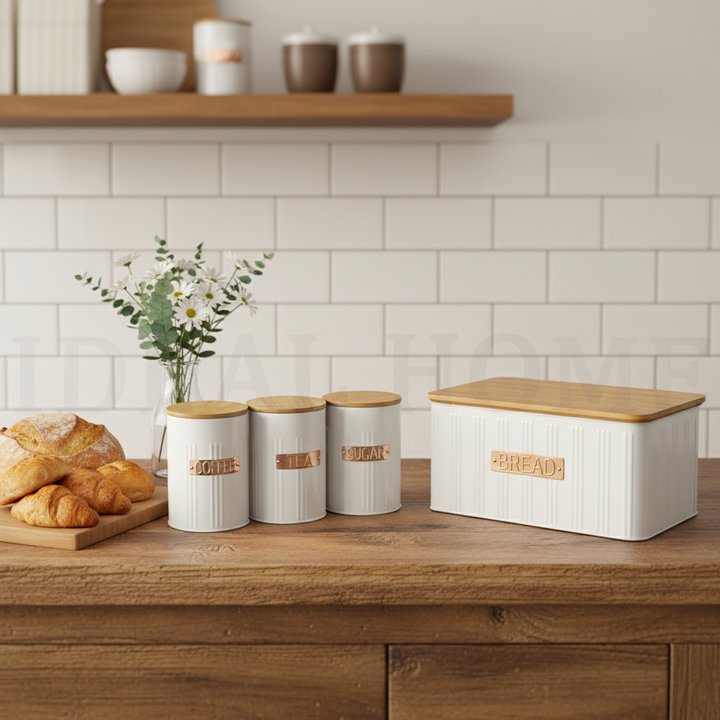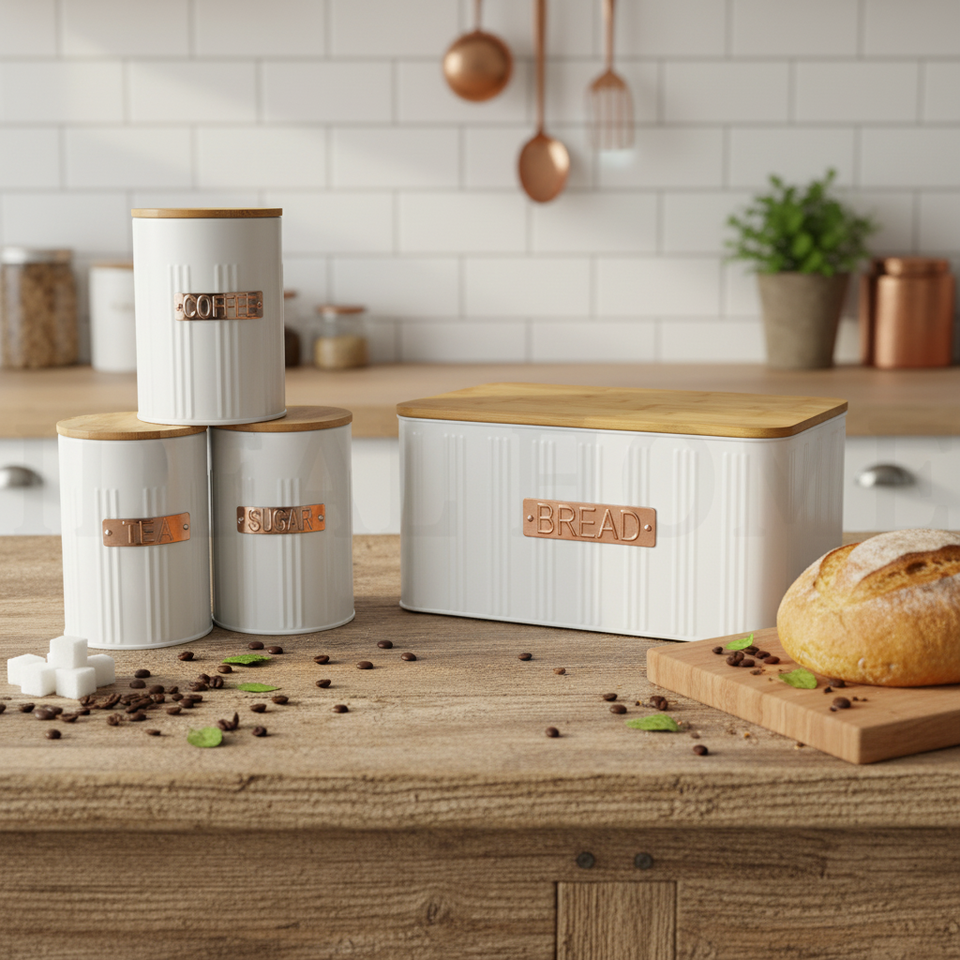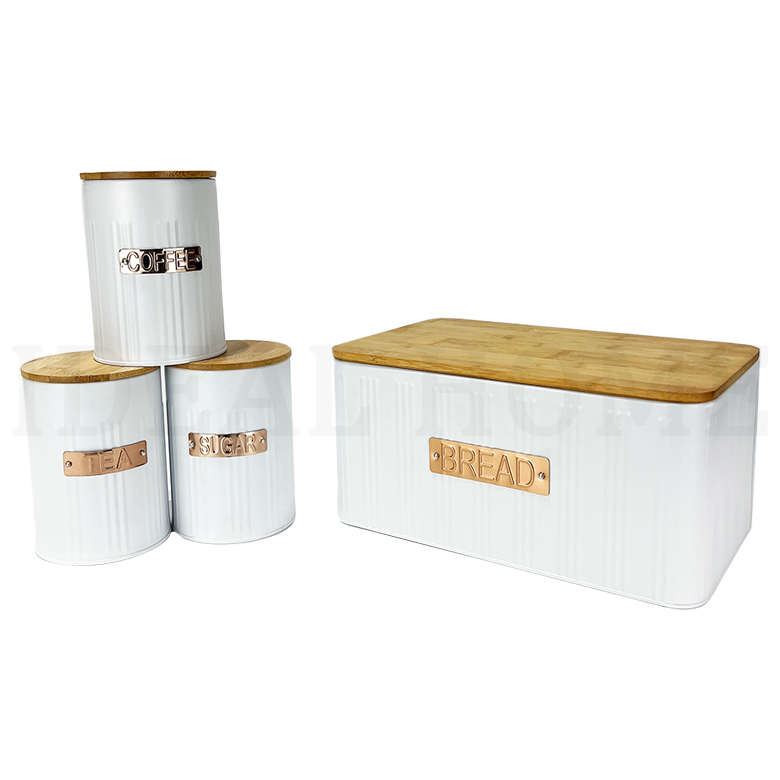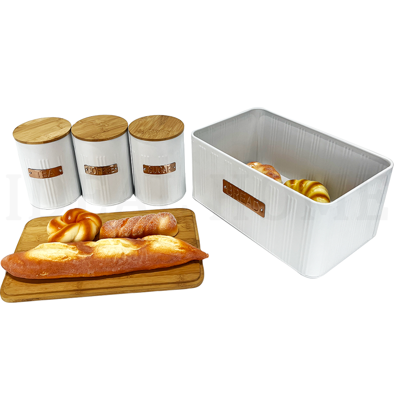 กล่องเก็บขนมปังแบบสุญญากาศสำหรับวางบนเคาน์เตอร์ครัว สีขาว ทำจากโลหะเหล็ก สำหรับเก็บขนมปัง บิสกิต ชา กาแฟ น้ำตาล ชุดกระป๋องเก็บของในครัว