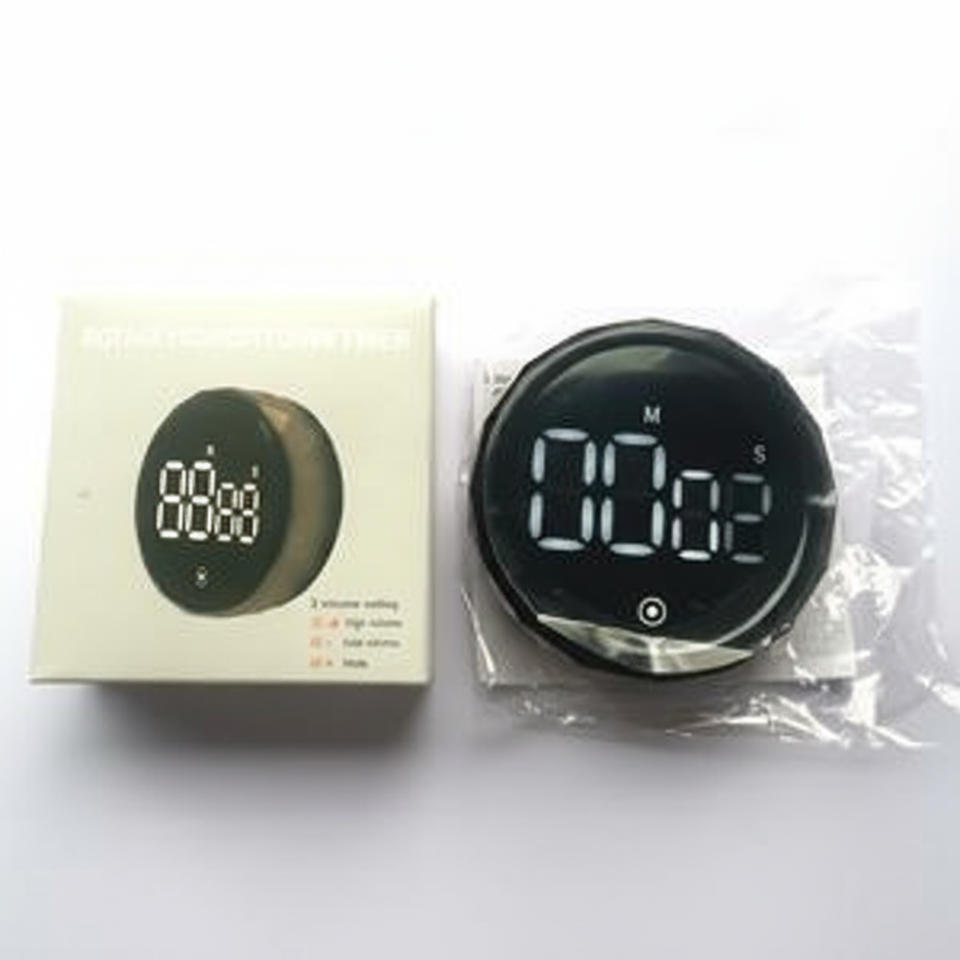 นาฬิกาจับเวลาครัวแบบดิจิตอล หน้าจอ LED ทรงกลม ควบคุมด้วยระบบสัมผัส ตัวเรือนพลาสติกแม่เหล็ก ตั้งเวลาถอยหลังได้ 60 นาที พร้อมฟังก์ชั่นเตือนเวลา นาฬิกาตั้งโต๊ะ