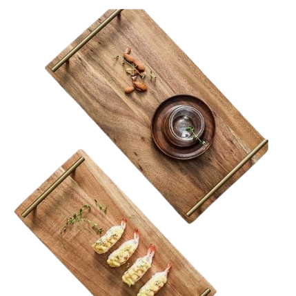 ห้องครัวจานอาหารค่ําถาดเสิร์ฟไม้อะคาเซียถาดเสิร์ฟสี่เหลี่ยมผืนผ้าแผ่นไม้สําหรับงานแต่งงานของคริสต์มาสของขวัญ