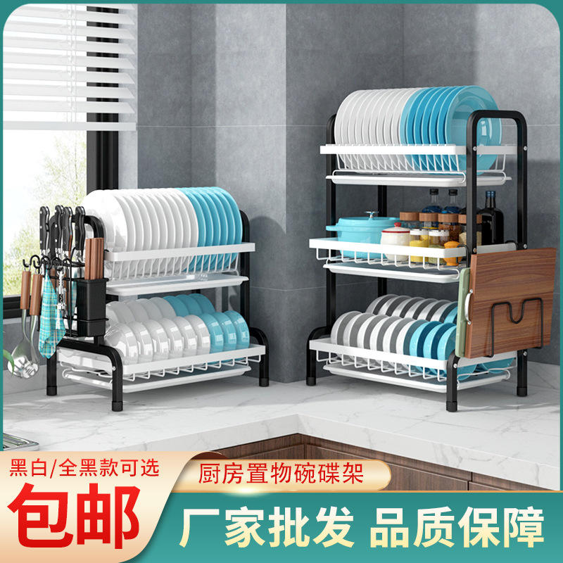 ชั้นวางจานในครัวขนาด L แบบแห้งเร็วอเนกประสงค์ สำหรับจาน ชาม ตะเกียบ พร้อมที่วางมีด