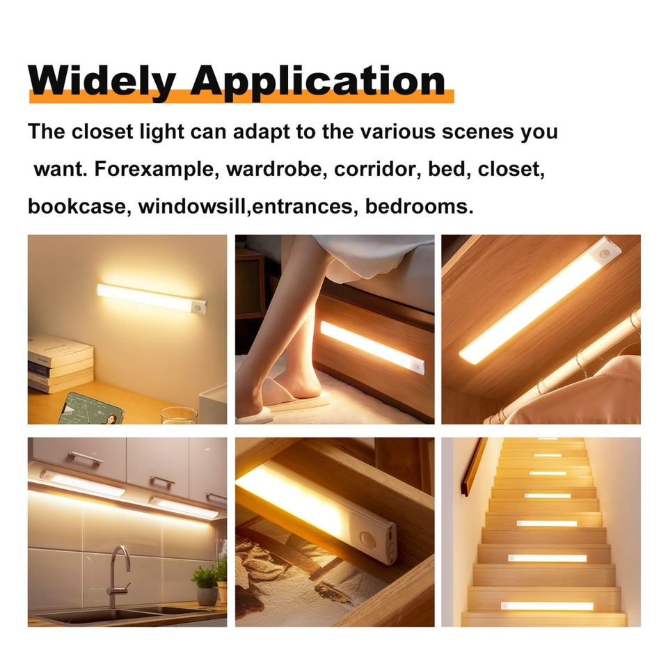 ไฟตู้โชว์ในครัว ไฟ LED เซ็นเซอร์ตรวจจับความเคลื่อนไหว ชาร์จไฟได้ ตู้เก็บของ ตู้เสื้อผ้า ไร้สาย ทางเดิน ใช้พลังงานจากแบตเตอรี่