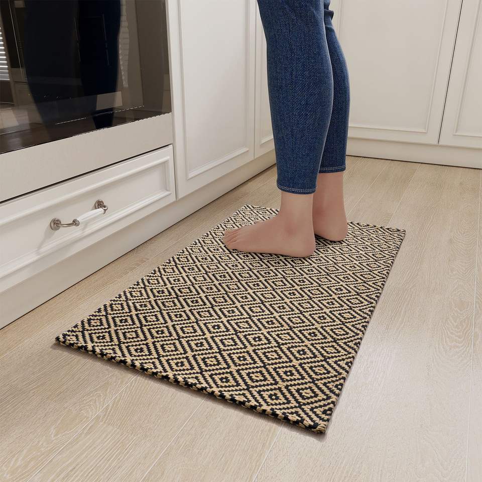 พรมปูพื้นห้องครัวรูปสี่เหลี่ยมผืนผ้าลายเรขาคณิตโพลีเอสเตอร์ผ้าฝ้ายกันน้ำกันลื่นกันคราบดูดซับน้ำมันพรมแถบยาว