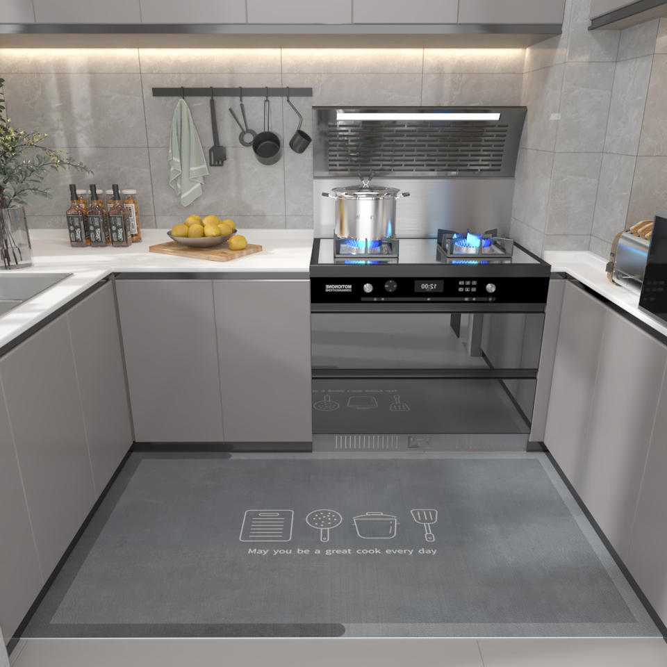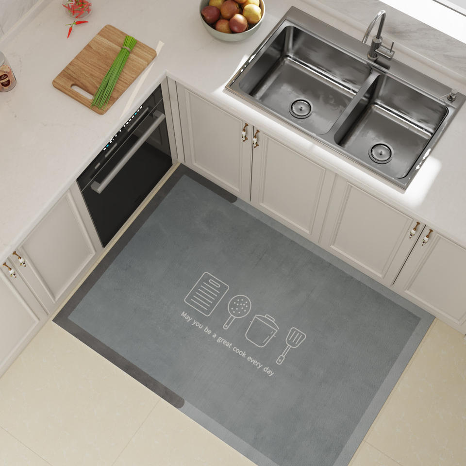 พรมปูพื้นห้องครัวรูปสี่เหลี่ยมผืนผ้ากันลื่นกันน้ำล้างทำความสะอาดได้ทนต่อคราบสกปรกเส้นใยโพลีเอสเตอร์สไตล์นอร์ดิกพรมห้องครัว