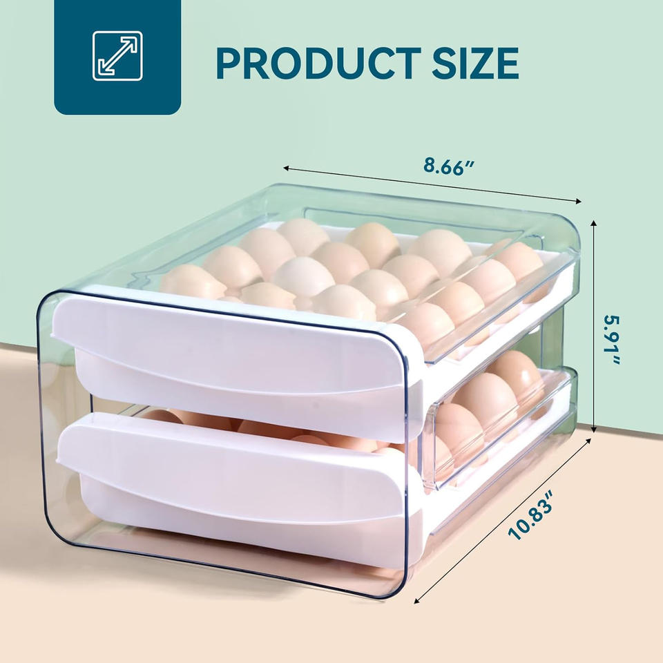 อุปกรณ์จัดระเบียบตู้เย็นในห้องครัวพร้อมลิ้นชัก2อันภาชนะพลาสติกเก็บไข่เกรดอาหารเทคนิคการฉีดจับเวลาความสดใหม่