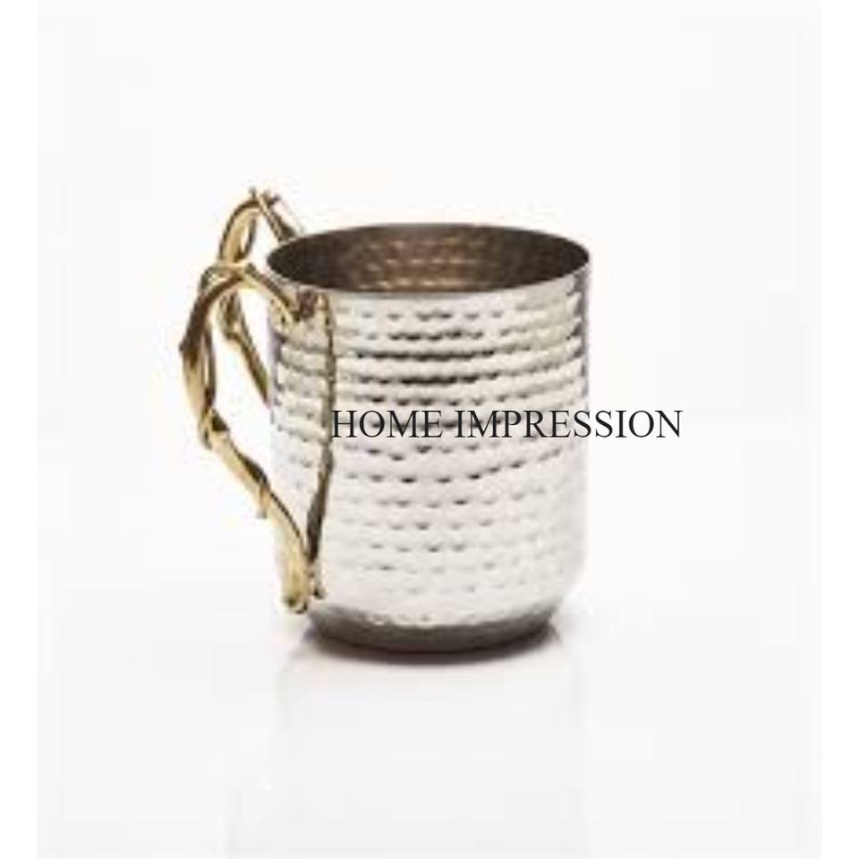 แก้วเหล็กโลหะสำหรับห้องครัวดีไซน์บนโต๊ะขนาดใหญ่พร้อมที่จับสีดำ