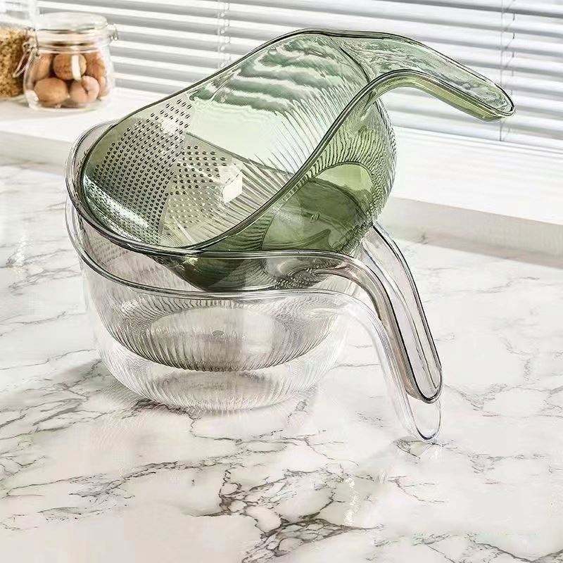ตะกร้ากรองอเนกประสงค์สำหรับครัว ทำจากพลาสติก PET ใช้สำหรับล้างข้าวและผลไม้ พร้อมหูจับ