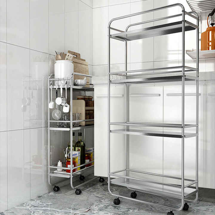 ชั้นสแตนเลส3 4ชั้นสำหรับจัดระเบียบในห้องครัวชั้นวางของในห้องน้ำอุปกรณ์เสริมชั้นเก็บของที่เก็บของในห้องครัว