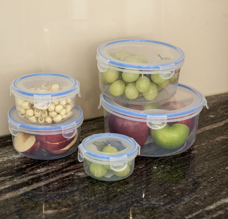 อุปกรณ์จัดระเบียบในห้องครัว,ชุดกล่องเก็บอาหารผักเกรดอาหารพลาสติก PP สดสำหรับเก็บอาหารเข้าไมโครเวฟได้พร้อมฝาปิด5ชิ้น