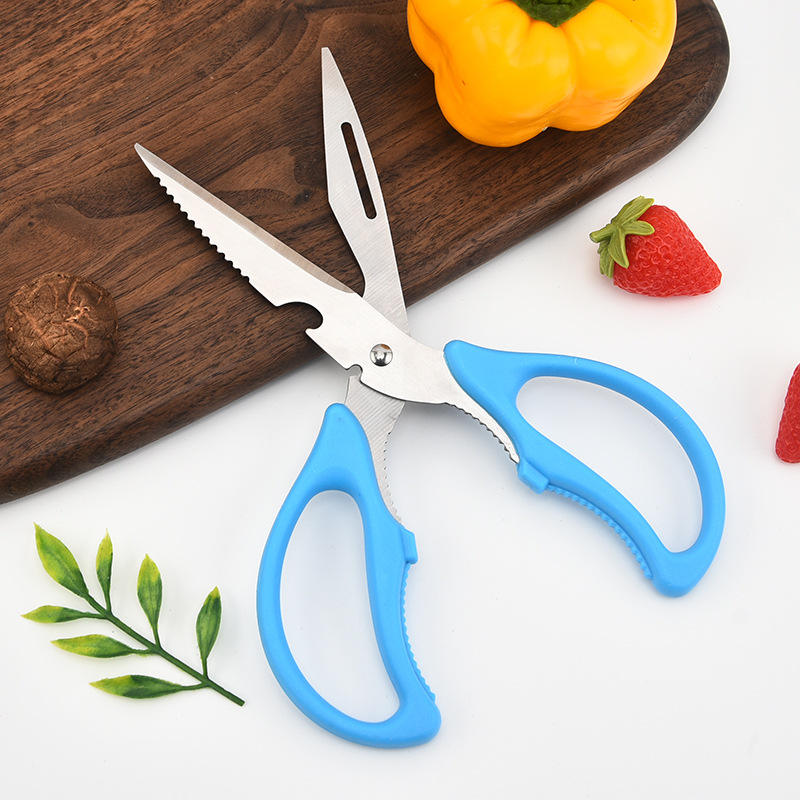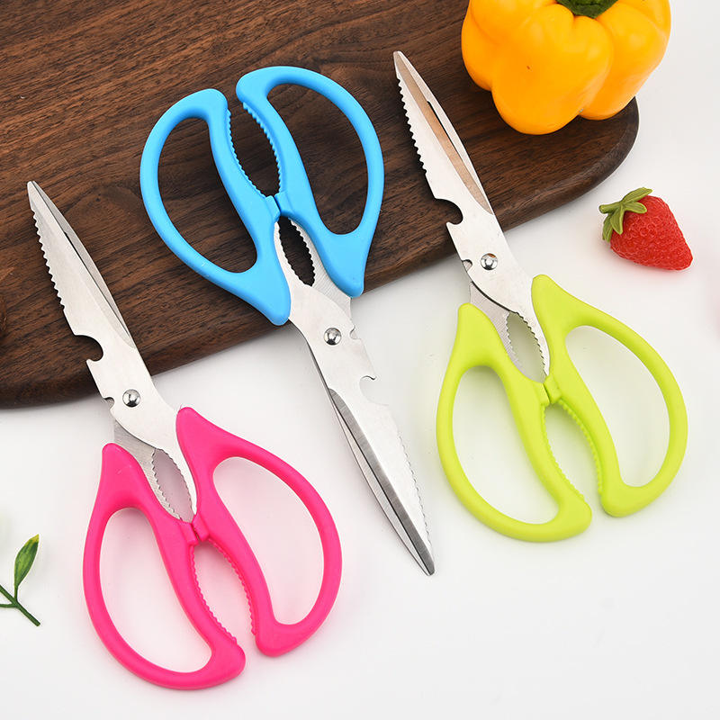 กรรไกรครัวสแตนเลสแบบหนา สีฟ้า สีเขียว สีแดงกุหลาบ สำหรับตัดอาหารและเปิดฝาขวด