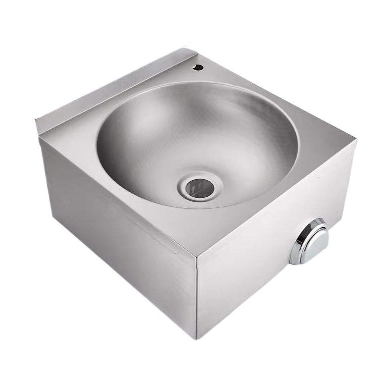 ท่อน้ำทิ้งอ่างล้างจานแบบติดผนัง ใช้ระบบกดด้วยเข่า ทำจากสแตนเลส