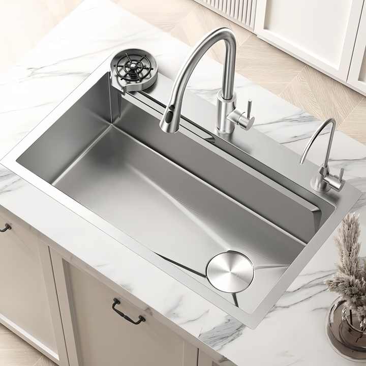 อ่างล้างจานครัวขนาดใหญ่แบบอ่างเดี่ยว สเตนเลส 304 แบบฝัง/แบบติดตั้งบนเคาน์เตอร์/แบบใต้เคาน์เตอร์