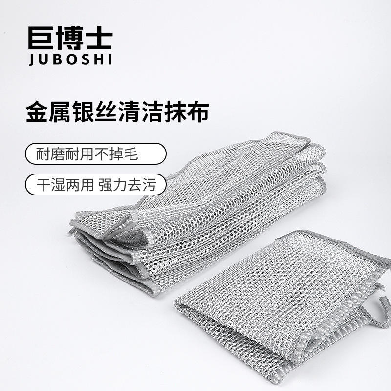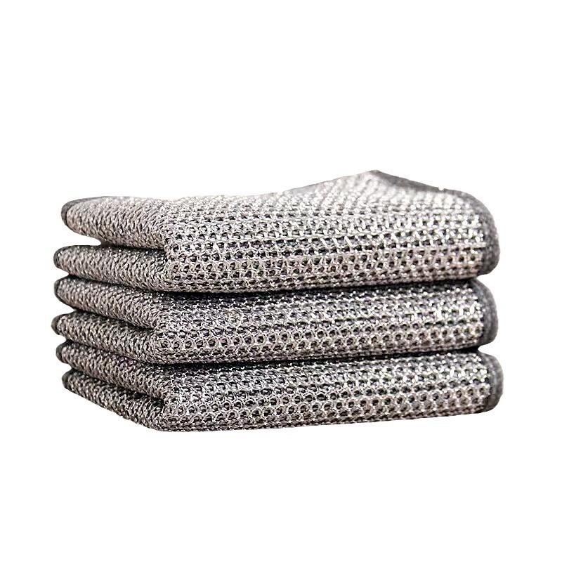 ผ้าเช็ดจานเหล็กสองด้านแบบไม่ติดกระทะ สำหรับใช้ในครัว ผ้าลวดสีเงินสองด้าน คุณสมบัติไม่ติดกระทะ เหล็กกล้า