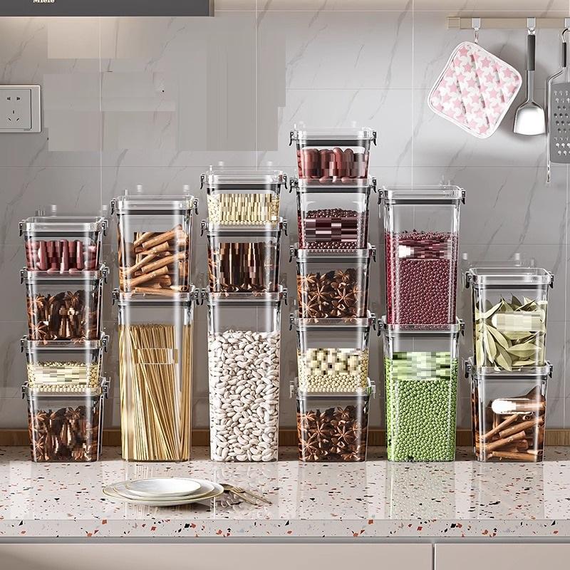 ชุดกระปุกใส่เครื่องเทศในครัวกล่องใส่เครื่องเทศอะคริลิกใสทรงสี่เหลี่ยมพร้อมฝาปิด