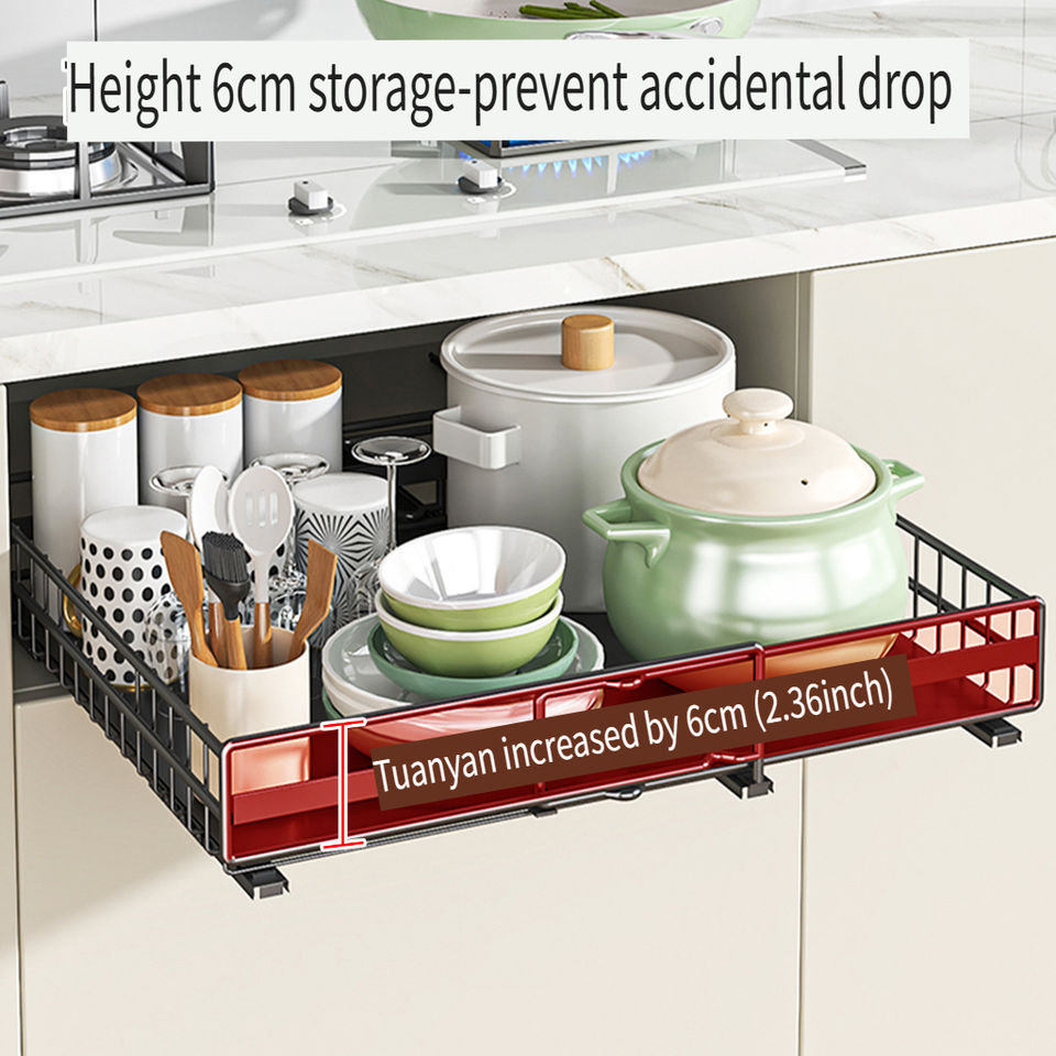 ชั้นวางของในครัวแบบยืนได้ ปรับระดับได้ วัสดุเหล็ก ทันสมัย ไม่ต้องเจาะผนัง สำหรับหม้อ กระทะ เครื่องปรุง จาน ชาม ตะกร้าแบบดึงออกได้ พร้อมที่ระบายน้ำ