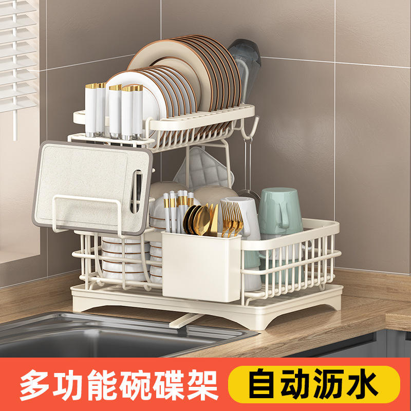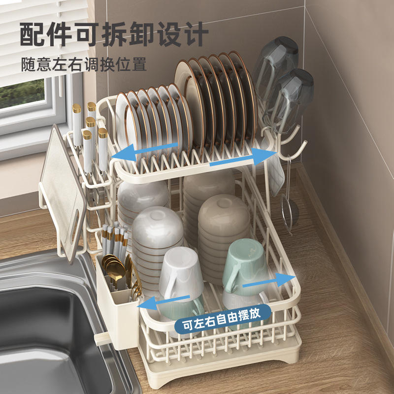 ชั้นวางจานชามในครัว 2 ชั้น ขนาดใหญ่ พร้อมถาด ชั้นวางแบบแห้งเร็ว