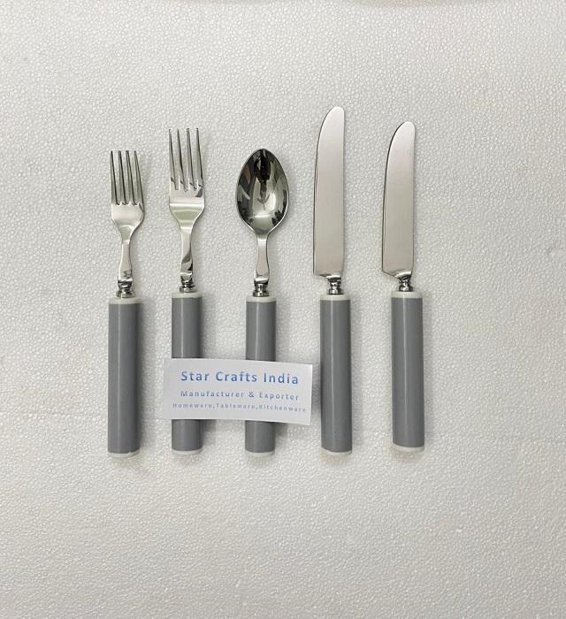 ชุดเครื่องใช้บนโต๊ะอาหารชุดช้อนส้อมมีดโรสควอตซ์หินธรรมชาติ