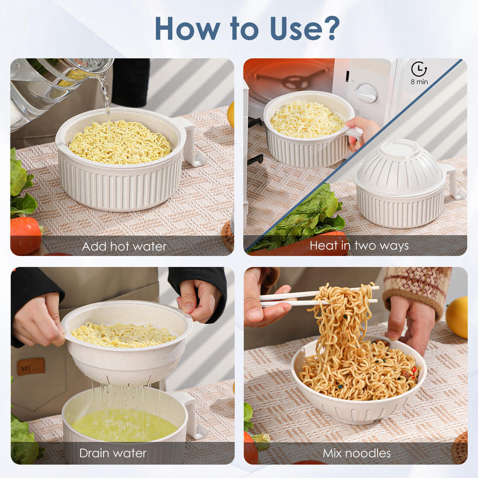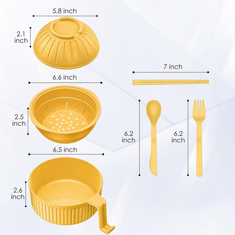 ชุดชามก๋วยเตี๋ยวทำจากฟางข้าวสาลี สำหรับใส่สลัด พาสต้า อบขนม ใช้กับไมโครเวฟได้ พร้อมตะเกียบ