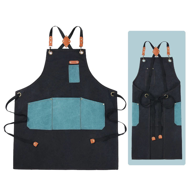 ผ้ากันเปื้อนผ้าใบสำหรับบาร์บาริสต้าผ้ากันเปื้อนสำหรับใช้ในครัวผ้ากันเปื้อนสำหรับทำงานทนทาน
