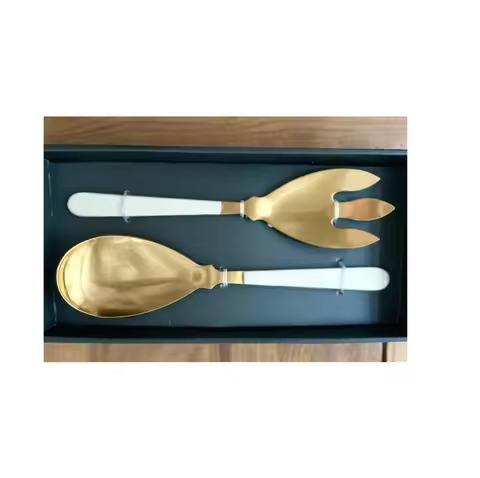 ชุดช้อนส้อมสลัดสแตนเลสสำหรับเสิร์ฟอาหาร ผิวขัดเงา