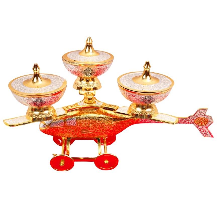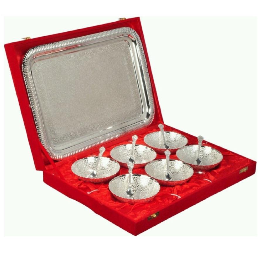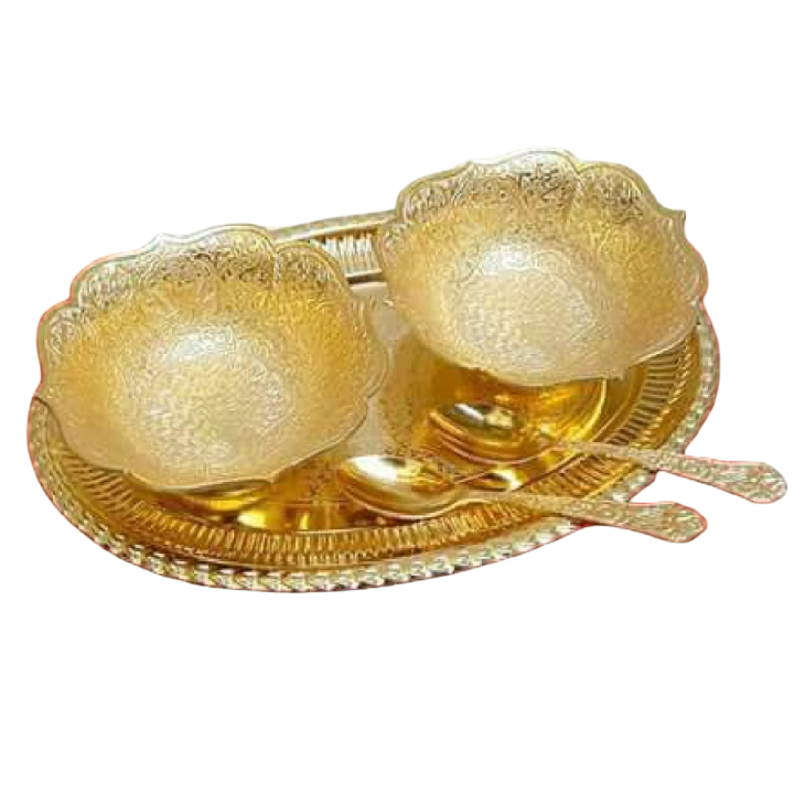 ชุดเครื่องใช้บนโต๊ะอาหารชุดชามทองเหลือง2ชิ้นพร้อมถาด1ใบและช้อนขัด2ช้อนสำหรับใช้ในครัว