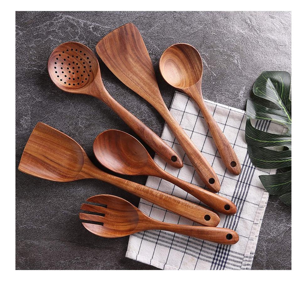 ชุดเครื่องครัว6ชิ้นชุดเซิร์ฟสลัดไม้ธรรมชาติ2ชิ้นชุดเซิฟเวอร์สลัดไม้2ชิ้นทำมือไม่เหมือนใคร