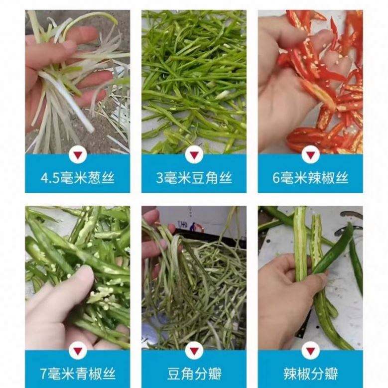 เอาต์พุตชื่อผลิตภัณฑ์:เครื่องหั่นผัก, ฝอย, ชิ้น